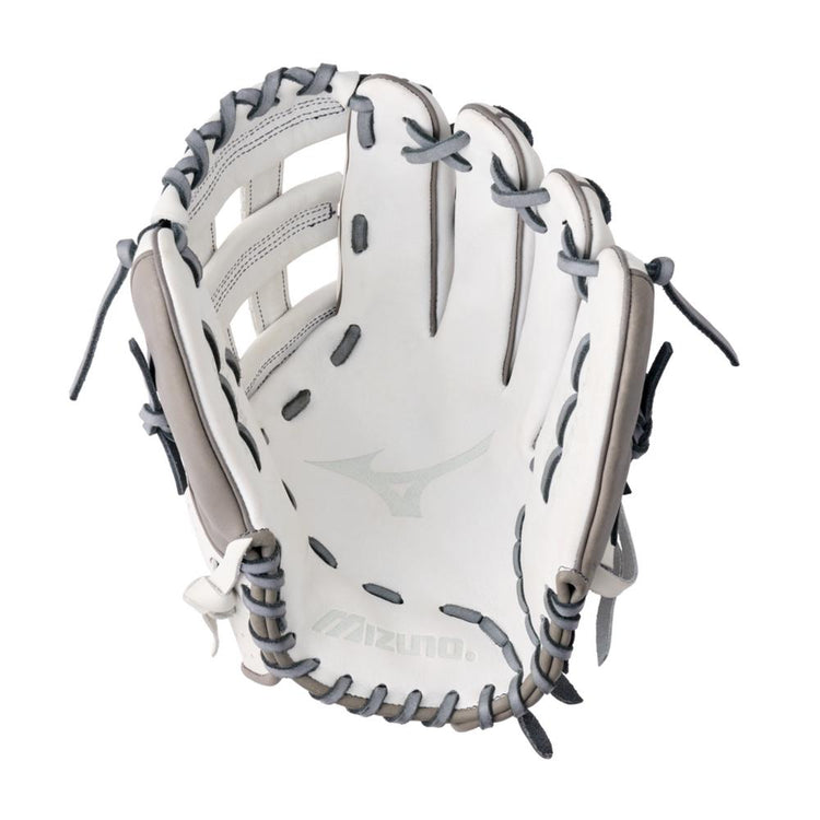 The new Mizuno Prime Elite series is crafted with soft, smooth, white and grey colored leather that is durable with a premium feel. Featuring an UltraSoft Pro Palm Liner for a soft feel and finish. A perforated thumb and pinky panel design reduces weight and increases breathability. Created with Finger Core technology, which is a new finger stall shape that helps improve flexibility and control when making a tough play, while also providing a more comfortable option for players who prefer to shift their ring finger to the pinky slot. Designed with Fastpitch patterns to make Prime Elite an excellent glove choice for serious players wanting to compete at their highest level on the field.