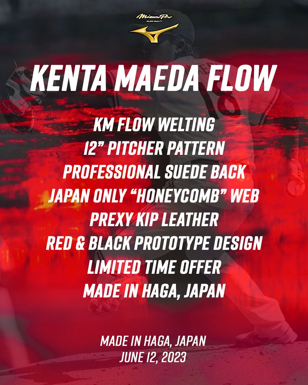 Mizuno 12" KM Flow HAGA GMP-HAGA1200B LE Glove of the Month June 2023 Right Hand Throw