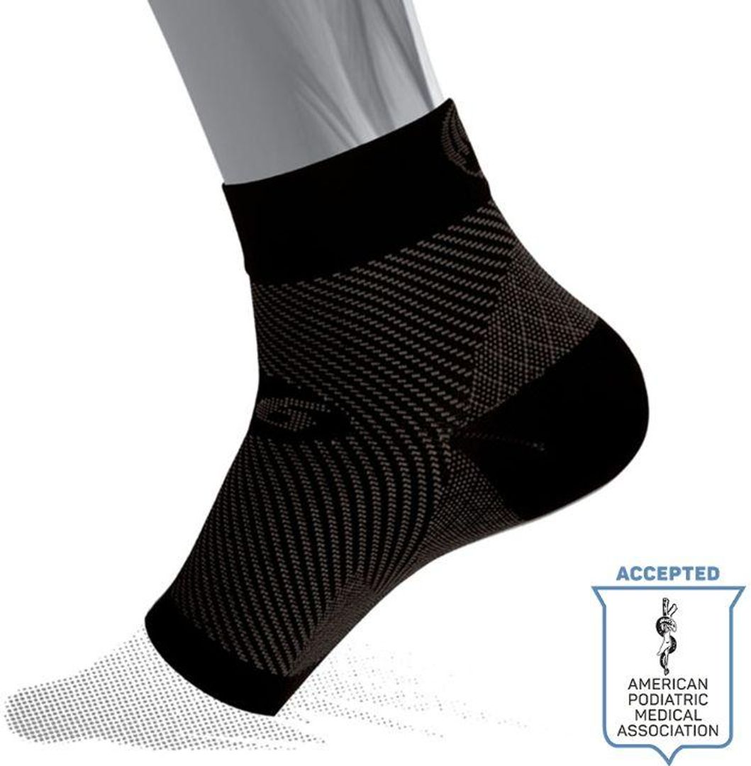 The FS6 Performance Compression Foot Sleeve relieves symptoms of Plantar Fasciitis, Achilles Tendinitis, heel pain, foot swelling, and other discomfort.